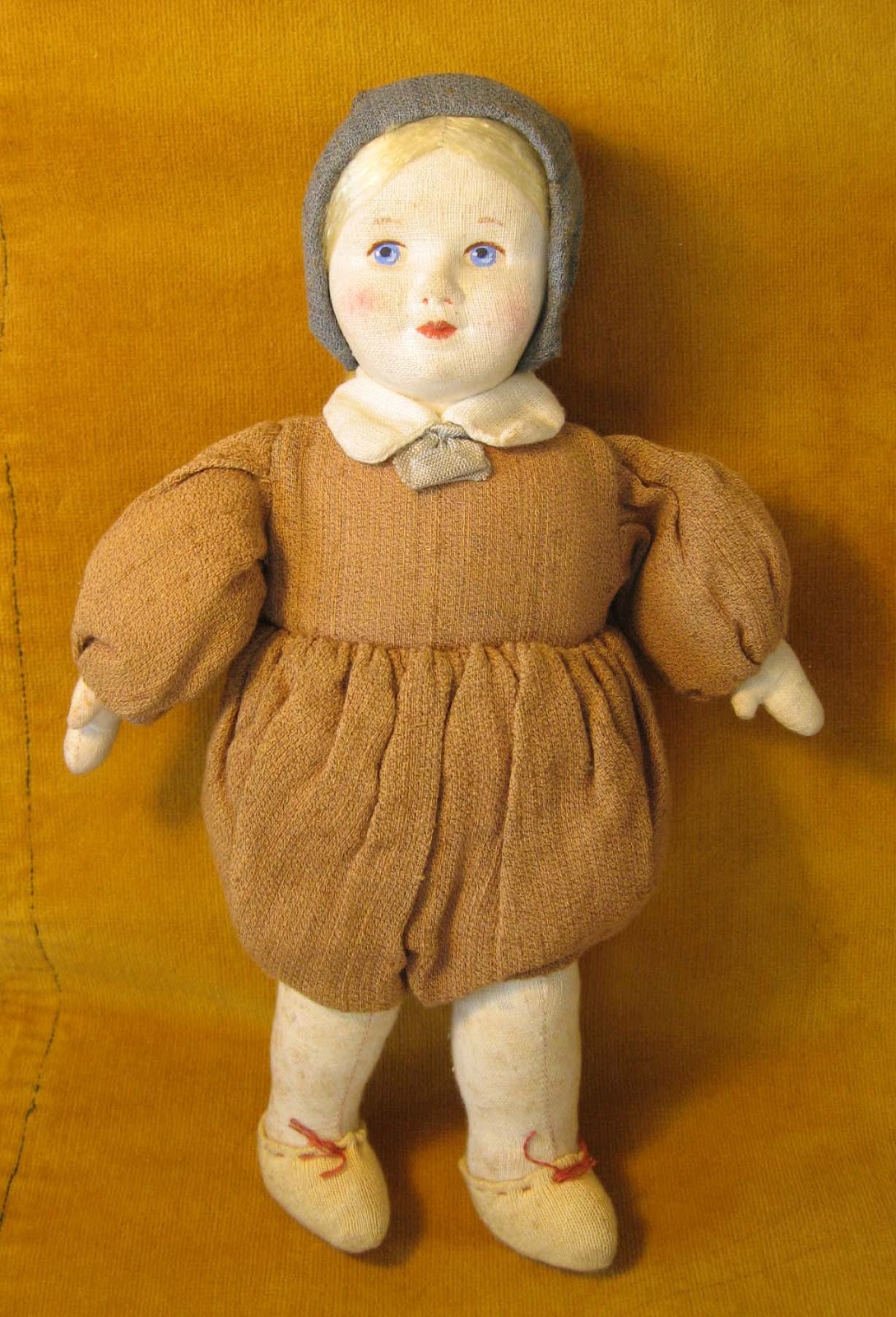 Тоже редкая кукла. Лицо сделано из ваты, без тканевого покрытия. Черты лица нарисованы прямо на вате.